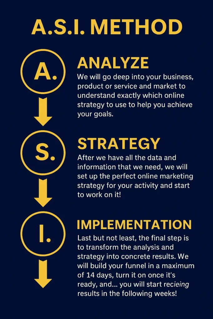 You don’t have to pay thousands of euros for SEO services or publish content on social media without results. You just need a simple online “funnel” that is perfect for catching your potential clients, bringing them to your business, and letting them buy your product or solution – simple and direct.